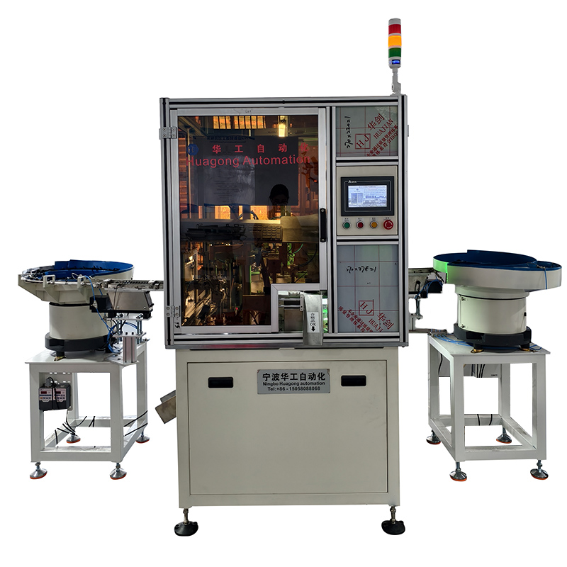 1. 核心功能与用途 · 主要功能: 实现塑胶部件与金属卡扣的自动对准、压入组装。 · 解决痛点: 替代传统人工组装,解决因产品公差、配合过紧等问题导致的生产效率低、产品合格率低、工人劳动强度大等问题。 · 终极目标: 实现该特定组装工序的全自动化或半自动化生产,提升生产的标准化、效率和质量一致性。 2. 典型应用场景与工件 这台机器处理的通常是需要“卡扣连接”的部件对,例如: · 汽车零部件: 内饰板(如车门板、仪表台侧板)上的金属卡扣组装、线束固定座等。 · 电子产品: 设备外壳(如路由器、电视机顶盒)的金属卡扣、内部支架的固定卡扣。 · 家电产品: 洗衣机控制面板、空调出风口格栅等部件上的金属固定卡扣。 · 家具五金: 塑料家具部件与金属连接件的组装。 3. 品质检测(可选但重要): · 压力监测: 压装过程中实时监测压力值,确保在设定范围内。压力过小可能意味着未安装到位(虚位),压力过大可能意味着卡扣或塑胶件有瑕疵,设备会自动剔除不良品。 · 视觉检测: 组装完成后,用相机拍摄检查卡扣是否安装到位、有无歪斜。 4. 下料: 合格的成品通过机械设备、滑道或传送带移出工作区域,进入下一道工序或收集箱。 5. 主要特点与优势 · 高精度与高稳定性: 采用精密的定位机构和控制系统,确保每次组装的一致性。 · 高效率: 组装速度远超人工作业,通常可达每分钟数件。 · 智能化: PLC(可编程逻辑控制器)或工业电脑控制,参数(如压力、行程)可灵活设置,适应不同产品。 · 良品率高: 内置的质量检测功能能有效剔除不良品,将产品合格率提升至99%以上。 · 人机友好: 配备触摸屏人机界面(HMI),操作简便,方便设置参数和查看生产数据(产量、良率、故障信息等)。 · 降低成本和劳动强度: 一台设备可替代多名工人,并大幅降低因疲劳导致的人为错误。